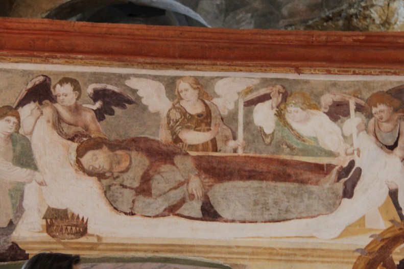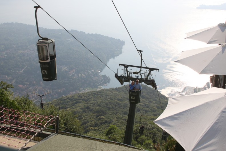 Unique moyen d’arriver à l’hôtel Funivia (le nom le dit…) à Laveno : le funiculaire ! Nous laissons donc les voitures en bas de la montagne, nous empoignons nos valises (et certains leur courage à deux mains…) et hop ! Nous grimpons dans ces minuscules nacelles qui, après une bonne dizaine de minutes, nous déposent à l’hôtel.